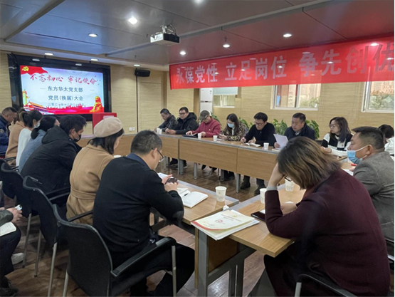 2021 年 12 月 24 日,東方華太黨支部黨員(換屆)大會(huì)暨 12 月份支部主題黨日集體學(xué)習(xí)會(huì)議在公司 309 會(huì)議室順利召開。大會(huì)主題為“永葆黨性、立足崗位、爭(zhēng)先創(chuàng)優(yōu)”上級(jí)黨工委江漢二橋街道黨工委指派黨建指導(dǎo)員一行兩人和公司總經(jīng)理蒞臨到會(huì)指導(dǎo)。